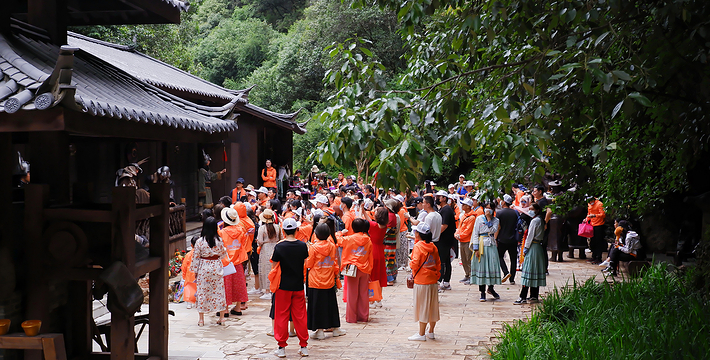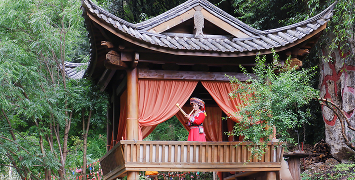 民族文化部分是以匠人街为主线,展示滇西北多个少数民族民间手工艺品的制作过程,并再现原始商贸的集货买卖场景。东巴谷又是一个自然生态大峡谷,是远古造山运动时期撕裂的一个断裂谷。谷长九公里,宽十几米至几十米不等,深几米至几十米不一,里面峭壁悬崖鬼斧神工,山洞林立森然如梦,再杂以各种钟乳、枯藤、怪树、奇石、珍禽、鸣鸟、飞瀑,这是一个何等寻幽探圣的自然美景呀!