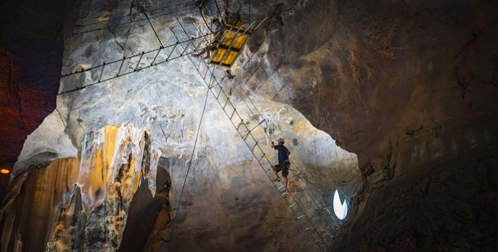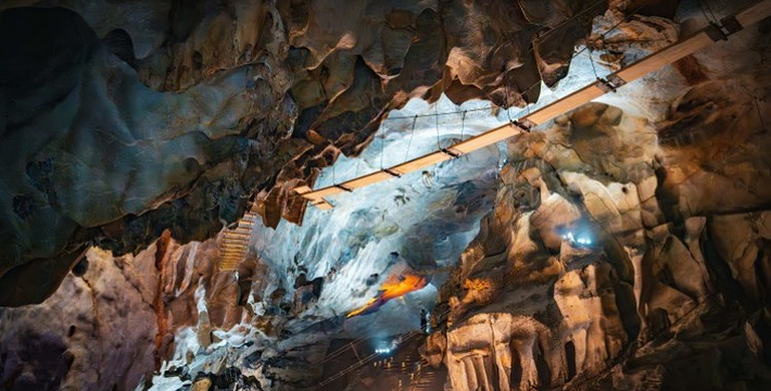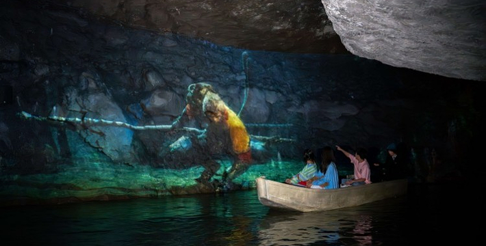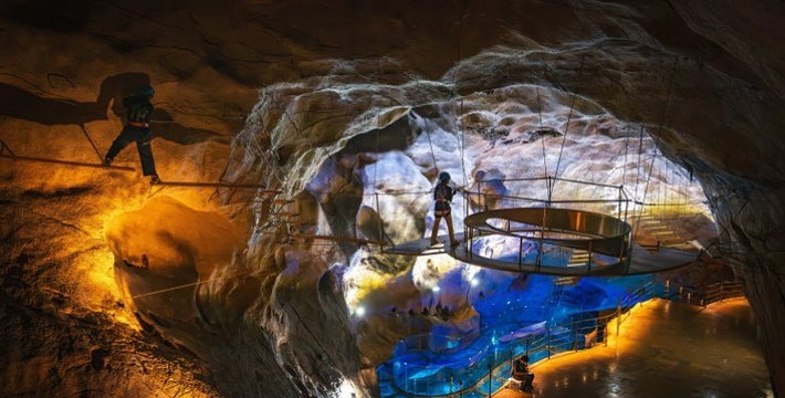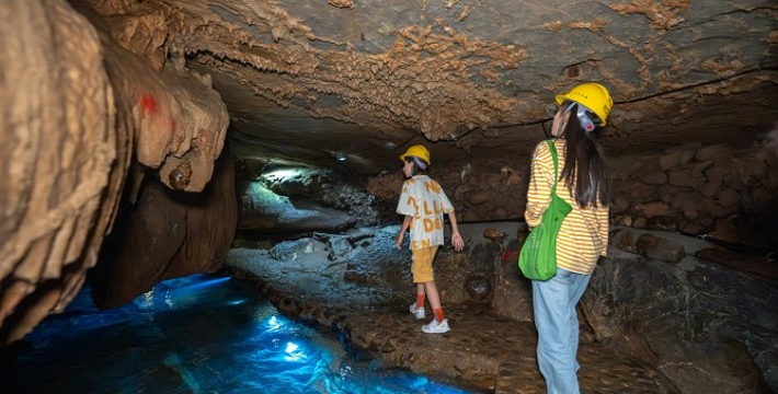 景区核心地段是一条岩溶地下暗河,全长4.5公里,人称“十里长河”。水域与洞穴面积12.8万平方米。其中1000米河道可通游船。一是轻松休闲的1000米溶洞荡舟游览。不仅可以感受到由于地壳变动及火山爆发等原因而形成的典型的喀斯特岩溶地貌,而且还可以领略现代科技给我们带来的“水上电梯”的风骚——由升船装置将连人带船从一级水道升至8米高处的二级水道。