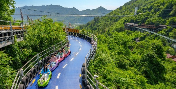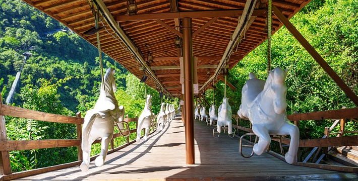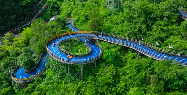 垂云通天河网红项目—玻璃漂流,目前是桐庐最长玻璃水滑道,全长1350米,首尾高度落差可达120米,整个游玩过程安全刺激,水花四溅,瞬间把你的叫喊声从:喲,喲,哟.....变成了“啊!啊!啊!....”让您体验在丛林云端漂流而下的凉爽之感,又称“丛林漂越";炎热的天气带上朋友或者家人一起来体验吧。
