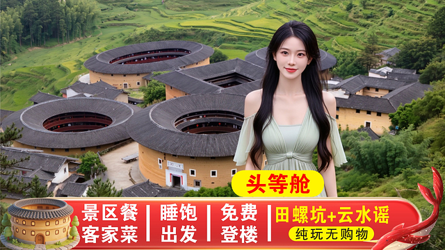 【产品说明】土楼仅允许原居民讲解员服务,由于当地文化礼仪和习俗,如讲解员请您到自家休息喝茶,请自愿选择,如当地讲解员存在推销行为,均与旅行社无关,建议您酌情购买,因地方政策缘故也希望得到您的谅解。自理