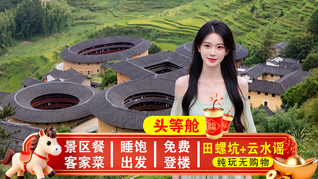 【产品说明】土楼仅允许原居民讲解员服务,由于当地文化礼仪和习俗,如讲解员请您到自家休息喝茶,请自愿选择,如当地讲解员存在推销行为,均与旅行社无关,建议您酌情购买,因地方政策缘故也希望得到您的谅解。自理