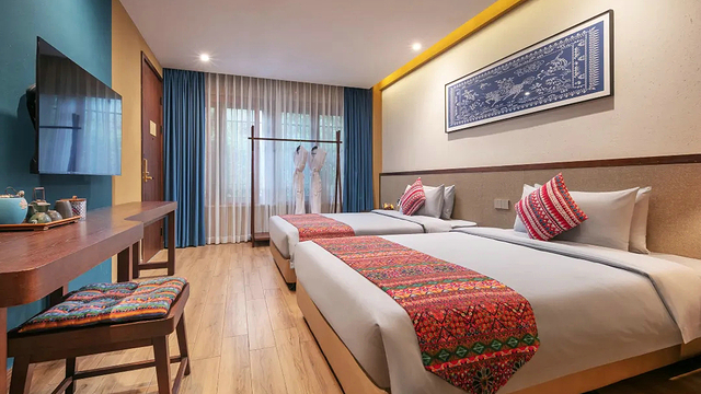 3、因酒店为民宿式酒店,每个房间都不一样,同级别房型均没有一模一样的房间,酒店房型照片为参考,具体入住房间以景区实际分配安排为准,敬请知悉!