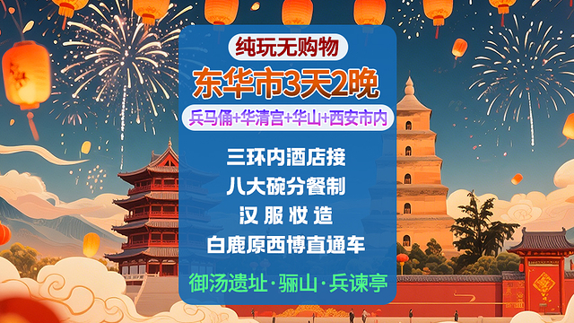 2、兵马俑+华清宫(华清池+骊山一票通)+华山+城墙+大慈恩寺