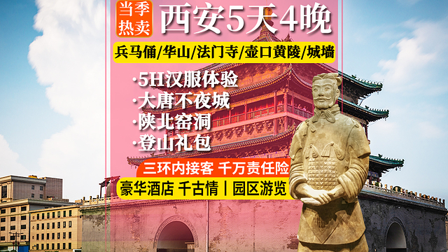 2、兵马俑+华清宫(华清池+骊山一票通)+华山+法门寺+乾陵+懿德太子墓或公主墓+大慈恩寺+城墙+壶口瀑布+黄帝陵轩辕庙