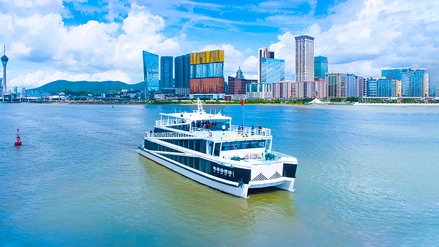 开船前30分钟自行抵达珠海湾仔旅游码头,乘坐豪华游轮游览世纪工程-港珠澳大桥或澳门环岛游;90分钟的船游将带您一一领略港珠澳大桥风光,打卡珠海地标!