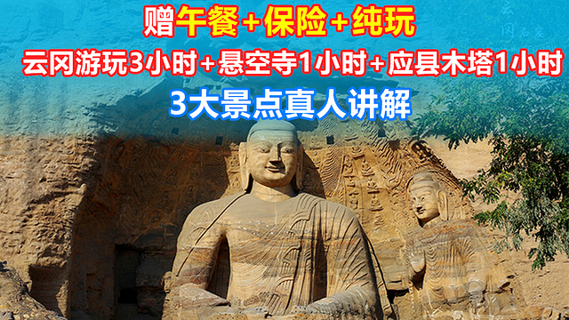4、【成人全票】:费用包含往返车费+导游讲解+中午简餐+成人云冈门票+成人悬空寺入园门票+成人悬空寺登临门票+成人木塔门票。适合年龄在19-59周岁的旅客使用。悬空寺登临门票需要导游现场团队窗口统一办理,若当天景区无登临门票,旅行社退登临门票费;