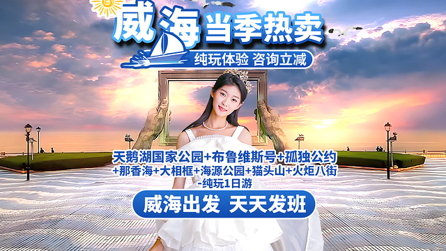 【产品说明】威海出发-火炬八街+大相框+天鹅湖+打卡布鲁维斯号网红船+那香海+猫头山+海源公园纯玩1日游