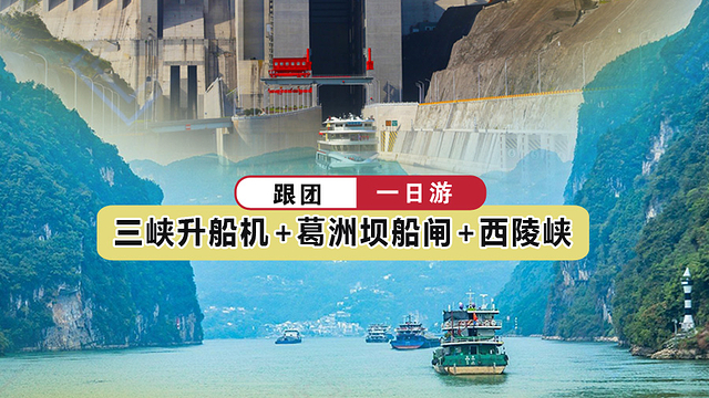 11:00航次三峡垂直升船机(上行,体验乘百米"升船电梯")--下船午餐--乘两坝一峡长江三峡系列观光游船--船观西陵峡--船过葛洲坝船闸(体验水落船低)--游船抵达三峡游客中心,此行程为车去船回;