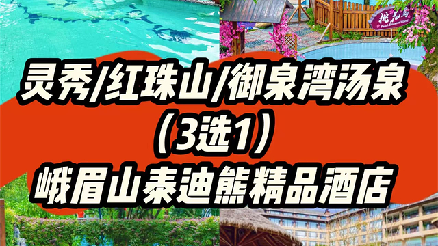 【灵秀温泉/红珠山温泉/御泉湾汤泉3选1】峨眉山泰迪熊精品酒店住1晚+单次温泉票2张