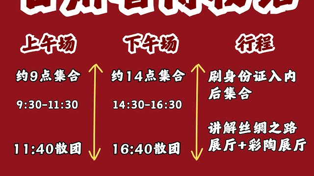 【2】场次信息:【上午场9:30】 【下午场14:30】【讲解2H】节假日期间行程可能延后,具体时间以讲解员通知为准