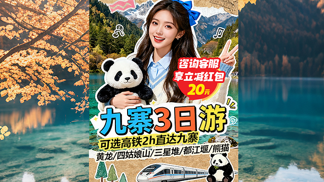 成都往返九寨沟/松潘高铁票二等座+行程大巴车位