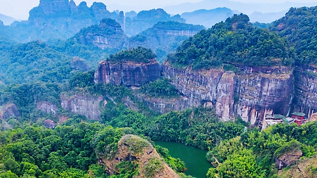 12:30 乘缆车上山(单程5分钟)如选择靠窗位置,俯瞰丹霞群峰和翔龙湖全景。