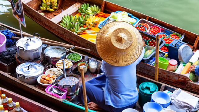 夜游湄南河:①水上市场手划船票②游船票+自助餐