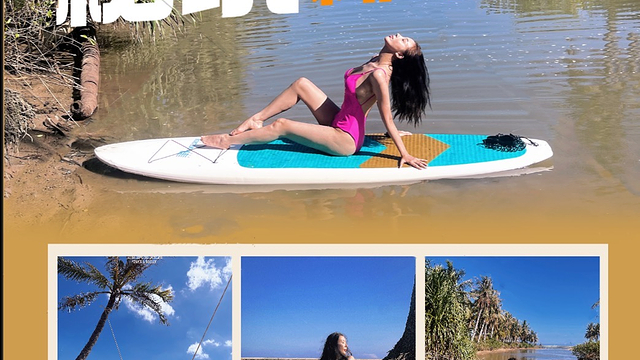 16:50在领队及教练的带领下出发划浆板前往椰林河道,登陆椰林秘境、游玩、专业摄影师跟拍、返回营地。