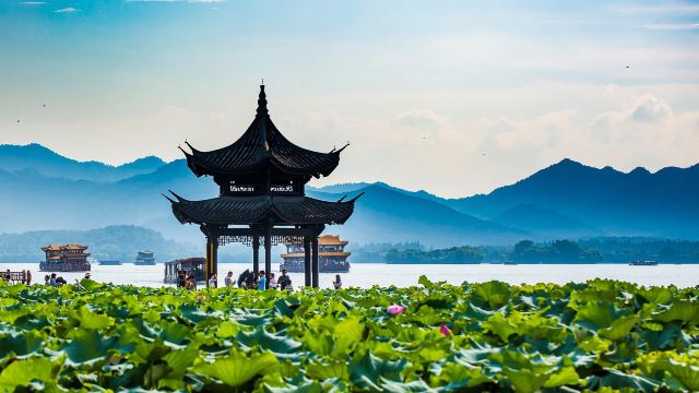 【西湖风景名胜区+曲院风荷等|时间任选丨6人包团不含茶餐画扇 | 包团 | 6人及以下团 | 普通导游 | 不含餐 | 自由解散 | 西湖游船·游览线路-环湖游(含登岛)|中文】