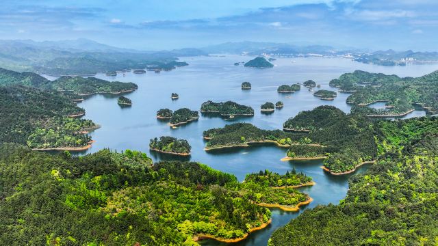 【千岛湖景区+千岛湖中心湖区等|杭州往返:中心湖梅峰岛+月光岛 | 上门接 | 拼团 | 50人及以下团 | 普通导游 | 千岛湖中心湖区·乘船体验-观光游船/标准舱|中文|不指定车型】