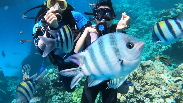 【墨岛+黑岛+珊瑚岛|大船浮潜+持证深潜2次 | 拼团 | 36人及以下团 | 普通导游 | 含午餐|中文|15座中巴】