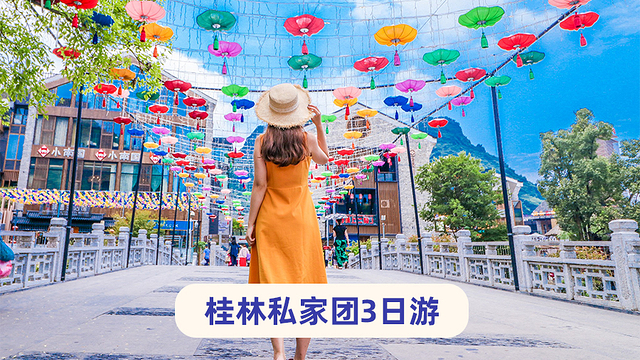 B套餐:漓江游船(兴坪段)、兴坪古镇、遇龙河多人竹筏、银子岩、十里画廊、阳朔西街、日月双塔文化公园、象山景区、富里桥旅拍服饰体验