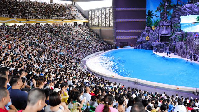 海豚剧场、白鲸剧场、海狮剧场、5D城堡影院、水上飞人大汇演、海洋夜光大巡游、海洋幻彩烟花秀等表演