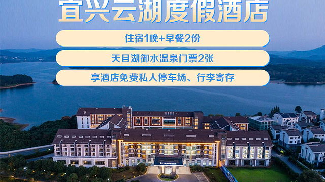 【产品说明】宜兴云湖度假酒店1晚+双人御水温泉门票+双人自助早餐