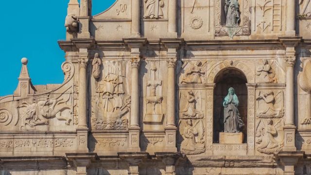 澳门大三巴一日游(专车接送,自由选择时间,不限方向可接可送)【巴洛克浮雕艺术解码​:五层花岗岩雕刻融合圣母踏龙头等东西方宗教符号,细节震撼】