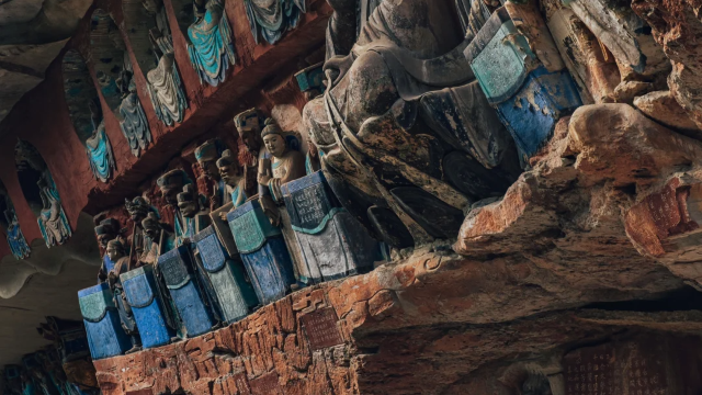 宝顶山石刻--璀璨辉煌,360 余幅巨型雕刻绵延画卷,北山石刻--大气磅礴,5000 余尊细腻精美