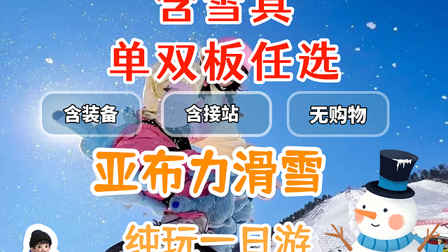 初级滑道3小时,单板双板都可选择,含雪板、雪仗、雪鞋、雪服、雪帽、雪镜六件套
