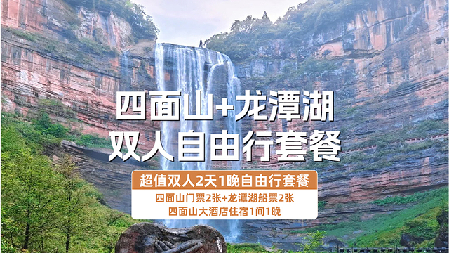 2.套餐包含:四面山大酒店住宿1间1晚+四面山景区门票2张+龙潭湖船票2张+双早+双份保险