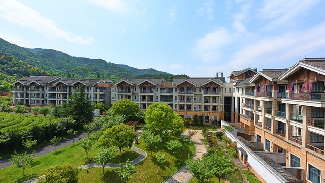 碧绿青山中的阳明温泉度假山庄