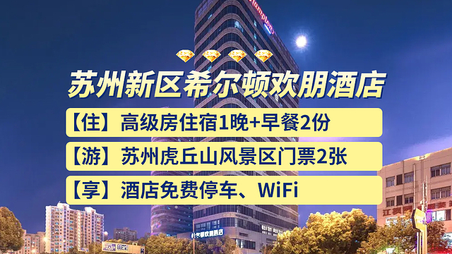 苏州新区希尔顿欢朋酒店1晚+双早+虎丘山风景区门票2张