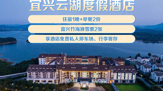 【酒店套餐】【周末不加价】宜兴云湖度假酒店1晚+双早+双人宜兴竹海滑雪场4小时滑雪票