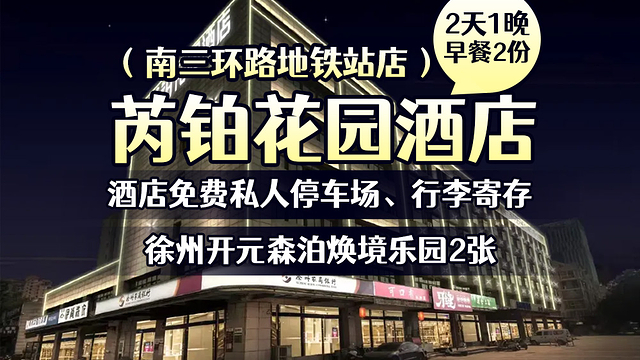 徐州芮铂花园酒店1晚+双早+双人徐州开元森泊焕境乐园(室外萌宠无动力乐园票+幻想岛室内乐园票)