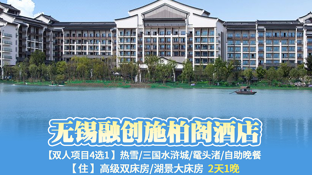无锡融创施柏阁酒店1晚+双人自助早餐+双人3小时无锡热雪奇迹/三国水浒城/鼋头渚/双人自助晚餐(4选1)