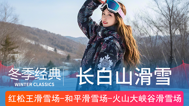 长白山和平滑雪场+长白山红松王滑雪场+火山大峡谷滑雪场一日游【2-4小时雪场套餐任选,无其他任何隐形消费】