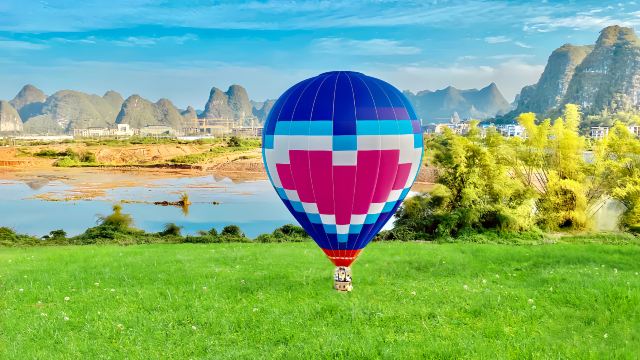 阳朔私人一日游:热气球飞行、竹筏漂流与龙舞表演【乘坐热气球静静翱翔于阳朔上空,俯瞰漓江蜿蜒流淌于连绵不绝的喀斯特峰林间,将令人屏息的壮丽全景尽收眼底。 在玉龙桥下体验活力四射的金龙舟巡游,感受当地鼓乐与民俗仪式的澎湃激情。 乘一叶宁静的遇龙河竹筏漂流,近距离探索令人惊叹的喀斯特地貌。】
