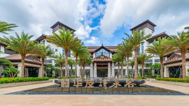 酒店整体设计偏东南亚风格,主体建筑掩映在茂林绿荫之中;