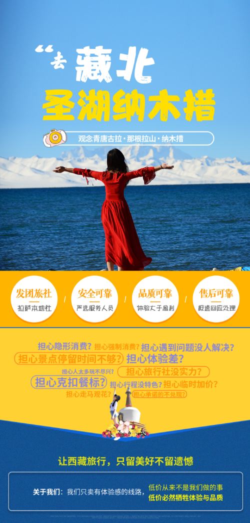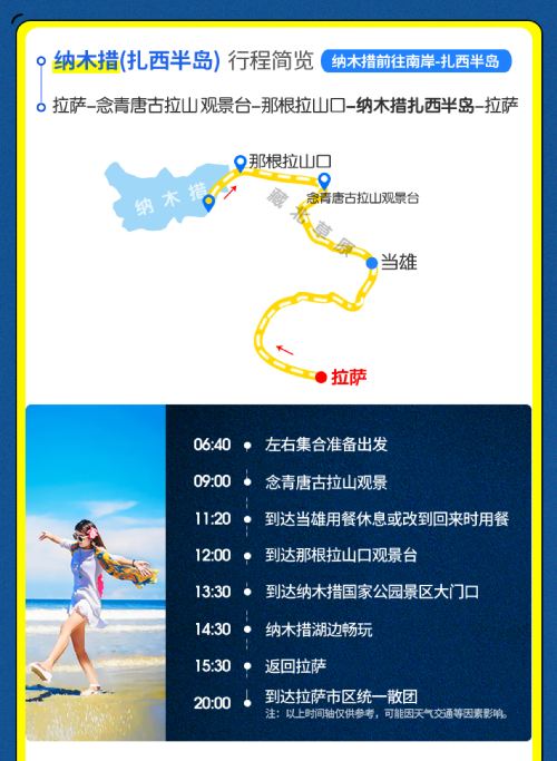 1、温馨提示:根据“冬游西藏”政策11月1日至次年3月15日纳木措免门票,本行程门票费用已减,任何优惠证件/人群均无优惠退费,请知悉;