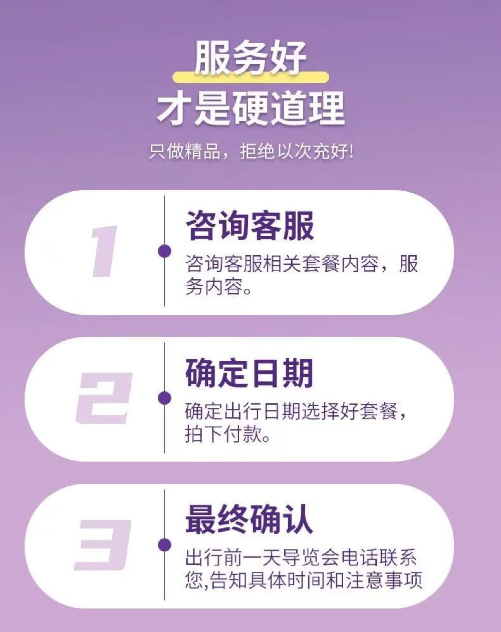 好多消费者不知道怎么选产品,只看价格,看价格只是一方面,重要的是您要对比套餐里面包含什么东西,我们的套餐实打实的烟花位就是烟花位,导游服务8小时一分钟都不会少,不存在电话指挥的事情,每个套餐都能让您玩到十几个项目演出,雨衣发箍每人都送,不然也不会傻到给别人扛价格...有问题请咨询客服哦、24小时为您服务、祝您旅途愉快...