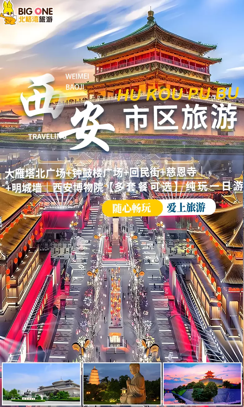 西安大慈恩寺+大雁塔+回民街+钟鼓楼广场一日游【西安出发-二环以内上门接|纯玩无购物|优秀导游讲解】