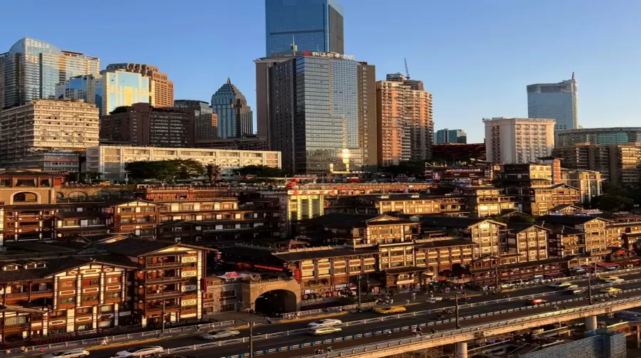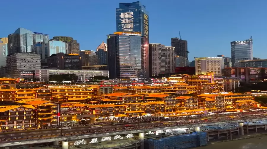 建筑特色:洪崖洞以巴渝传统“吊脚楼”风貌为主体,依山就势、沿江而建,通过分层筑台、吊脚、错叠等山地建筑手法,展现出青砖、石瓦、石板路的古典民居风貌,形成独特的“立体式空中步行街”。