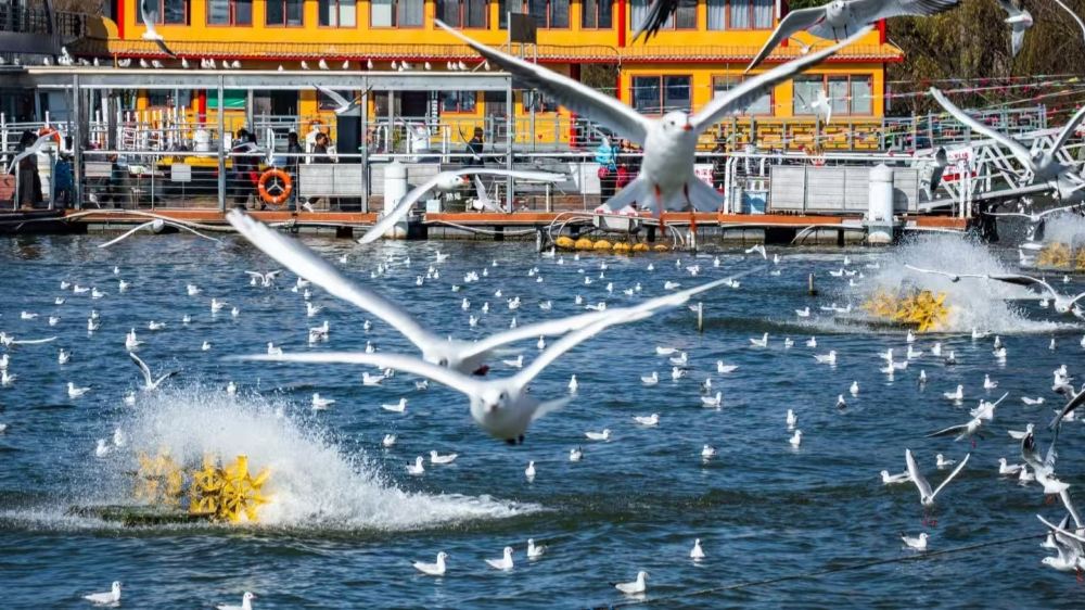 ▲ 可近观滇池,远眺西山“睡美人”全景。每年10月底至次年3月,这里是观赏和投喂红嘴鸥的经典地点。
