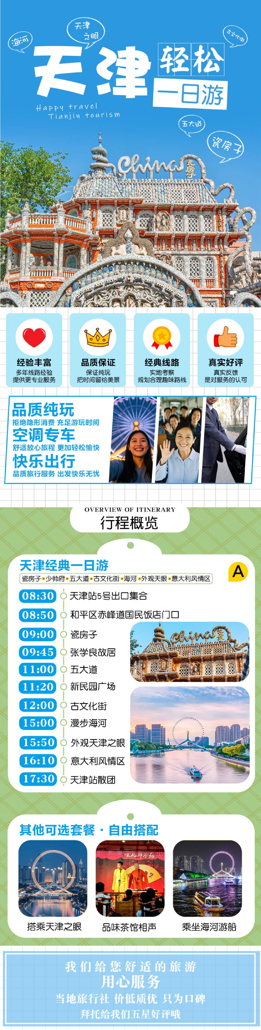 1、五一、国庆、春节法定节假日及寒暑假旺季期间,因景区客流较大,排队现象严重加之交通管制容易出现拥堵,为了能够有个更好的出游体验,导游会根据当天情况调整集合时间和地点,景点参观顺序,具体请以实际通知为准,敬请谅解!