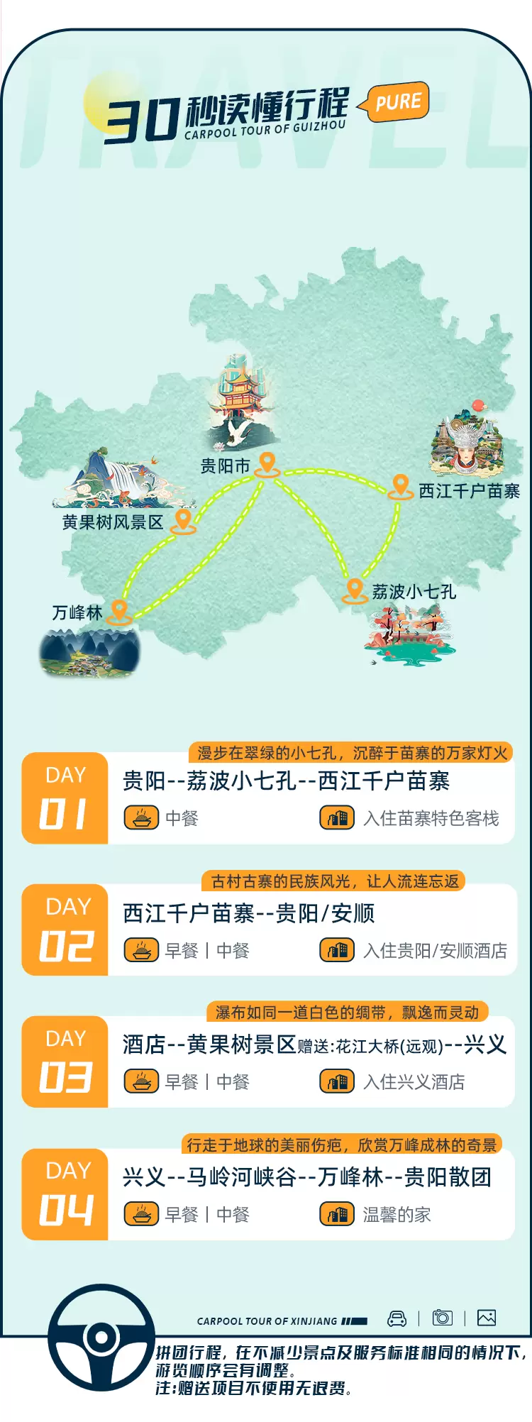 黄果树景区+万峰林景区+马岭河峡谷景区+荔波小七孔景区+西江千户苗寨四日游【赠花江大桥 品质纯玩】