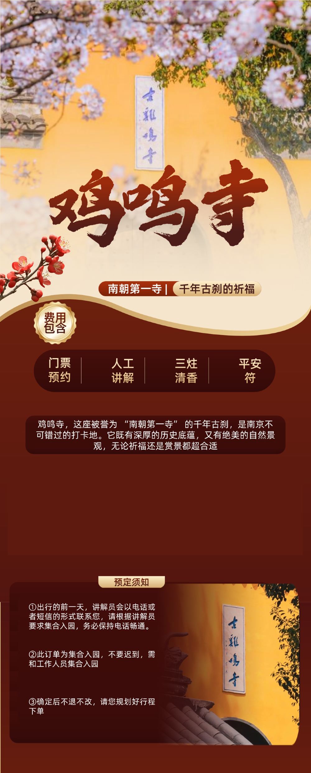 鸡鸣寺门票+人工讲解+三柱清香x赠送平安福【人工讲解/配耳麦】