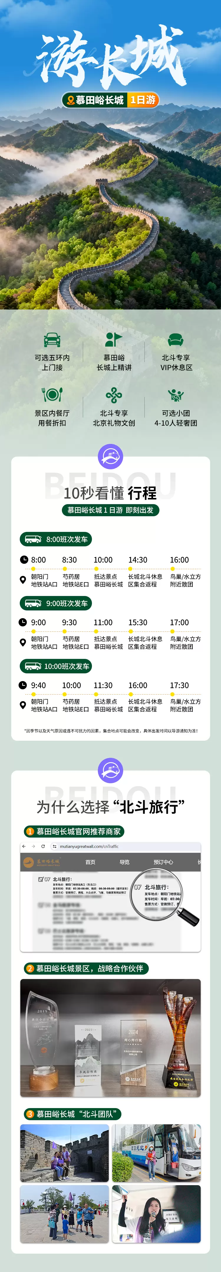 北京慕田峪长城一日游【赠长城上导游讲解服务/每人赠送纪念品一个+意外保险/多班次可选/可选含鸟巢/纯玩无购物】