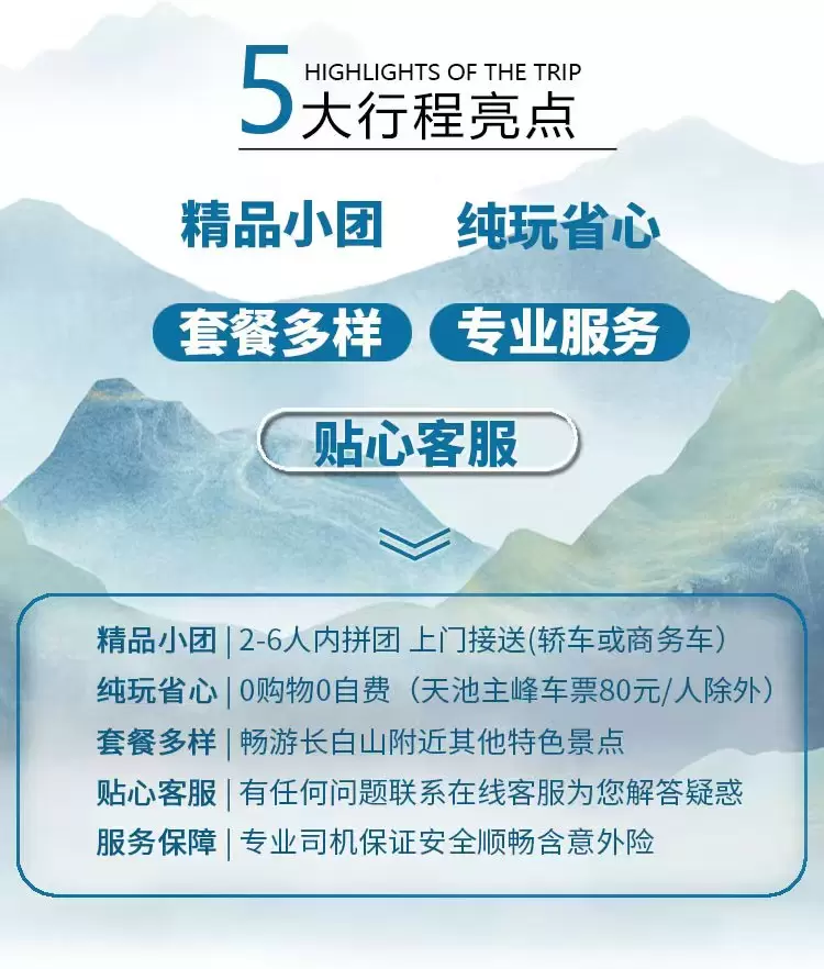 长白山北坡景区+天池一日游【万达/鲁能出发 多套餐可选 6人内小团】
