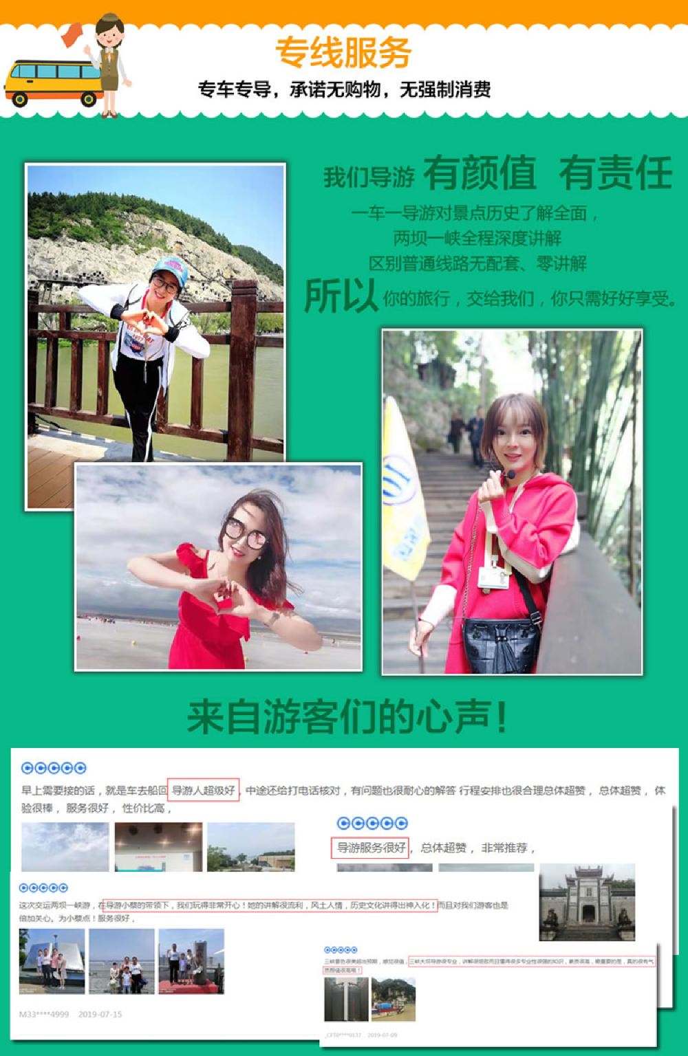 2.专线服务:专车专导,承诺无购物,无强制消费,拒绝增加自费景点,低价引流,感受一日游,真,无购物!