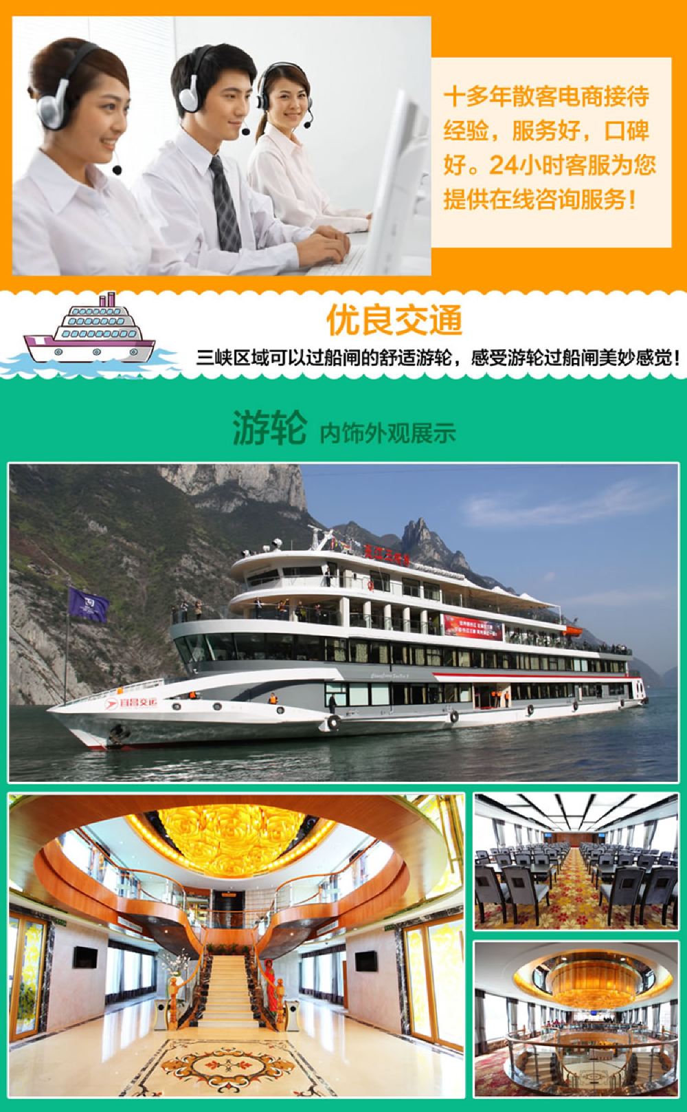 4.优良交通:长江三峡系列游船提供线路支持,三峡区域可以过船闸的游轮,感受游轮过船闸美妙感觉!
