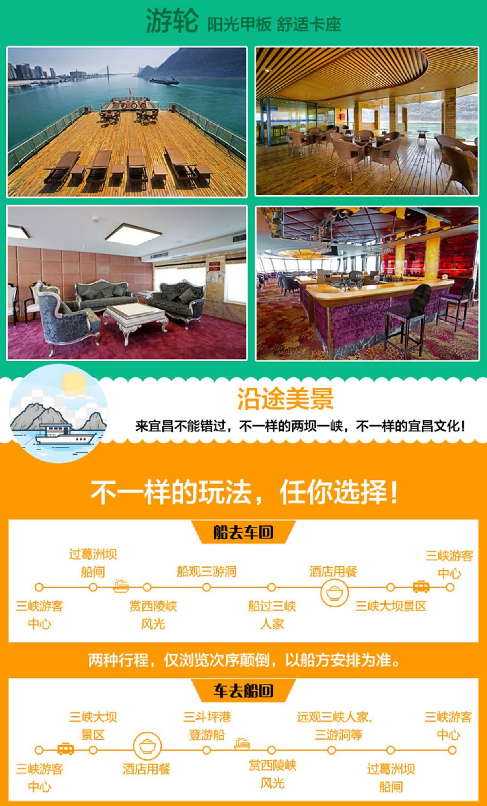3.关于行程:因船位有限,船去车回和车去船回具体的行程方式可能由船方根据实际情况调配(两种行程内容一样,顺序颠倒),我们无法承诺您的游方式。以船方实际安排为准,特此声明!