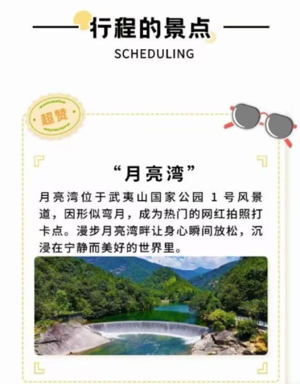 武夷山国家公园1号风景道沿线展示了自然景观特征及多种人文景观,行走其间可感受人与自然和谐之美,还能在1号风景道(国家公园段)领略丹霞地貌景观,体验生物多样特色,领悟人文韵味。